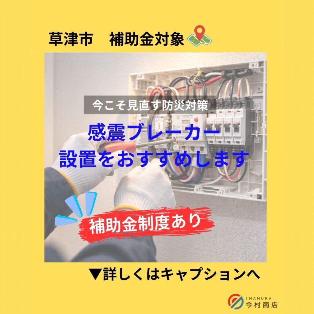 「感震ブレーカー設置」に草津市の補助金が使えます。