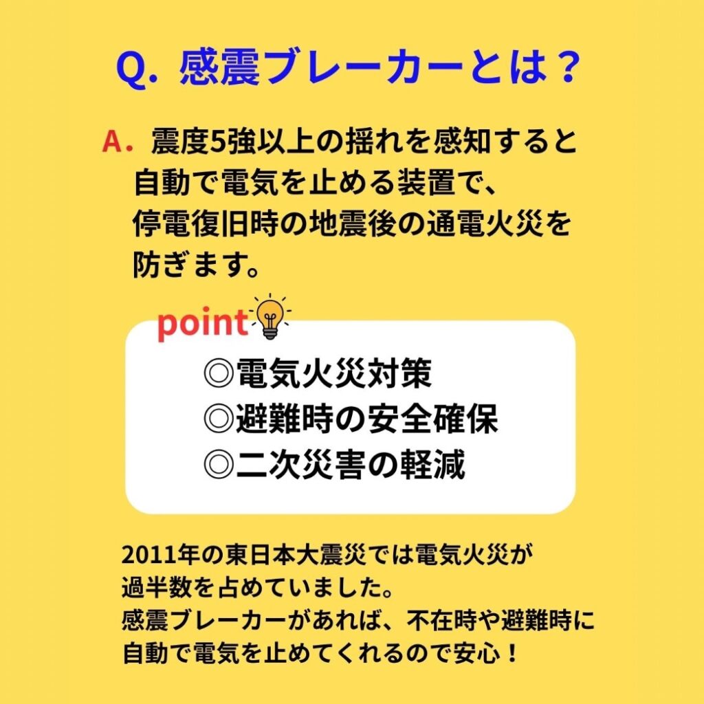 ✔ 地震時に自動で電気を止める